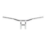 Chrome plated. This comes with approval. With notched right side for bikes equipped with e-throttle (TBW or Throttle by Wire) technique. Shaped like the regular Tyson but more massive. Bars are 31″ wide with 2.75″ pullback and with an additional 2″ pullback in the risers. Constructed from seamless 3mm thick 4130 Chromoly. In the middle bars are 1″ at the grips smoothly tapering to 1-1/8″ diameter at the, TIG welded, 1-1/4″ uprights. Takes 1/2-13 threaded mounting bolts. Center width is 3.5″ so these will fit most stock and aftermarket triple trees. Note: Check your local MCS dealer or the MCS sales department for exact type of approval and validity on bike model and years on the test report.